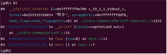 | $ backtrace | 프로그램 전체 스택 프레임 출력 |