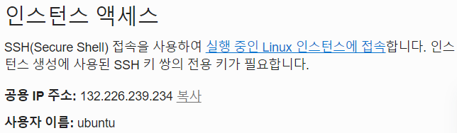 | SSH Username | Oracle Cloud의 사용자 이름 |