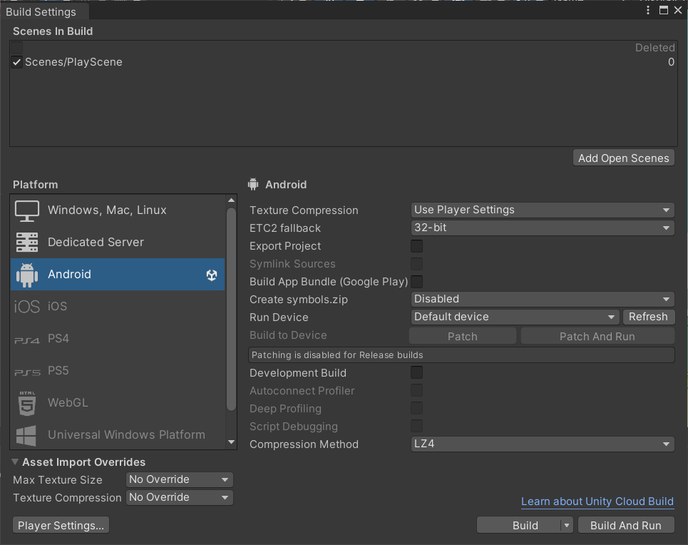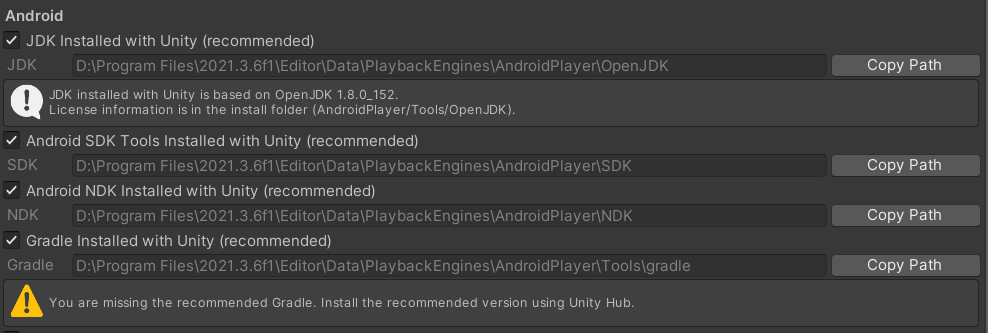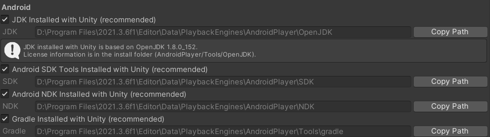 - 사용할 에디터(2021 LTS)의 AndroidPlayer 폴더에 붙여넣기한다.