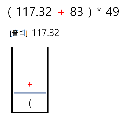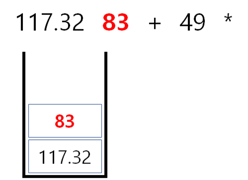 피연산자 '117.32'를 만남 → 스택에 PUSH |