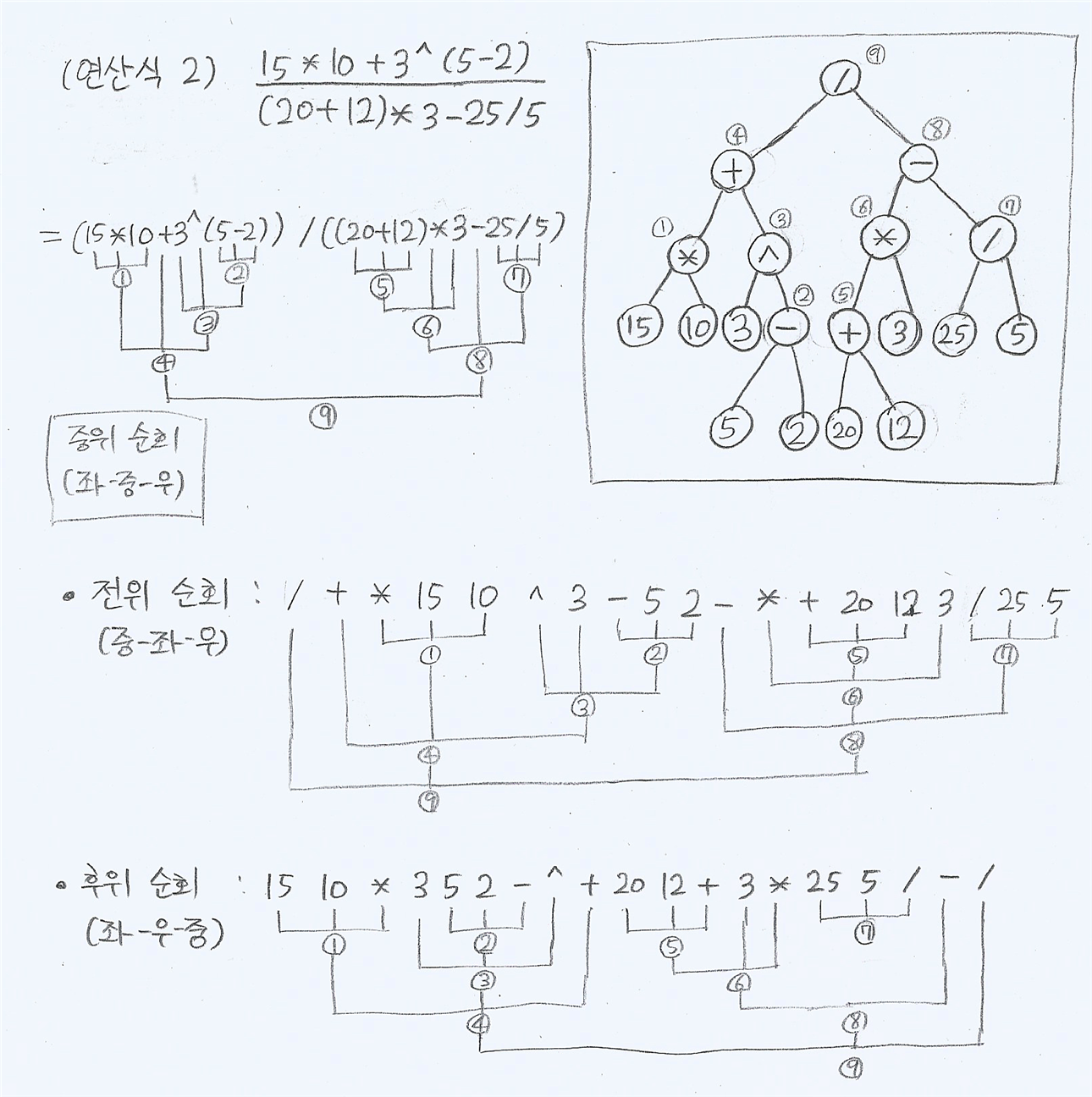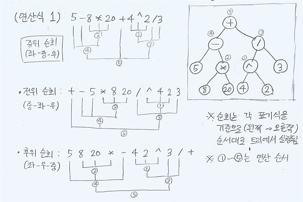 [참고] 연산식의 중위, 전위, 후위 순회 예시(자료구조 과제)