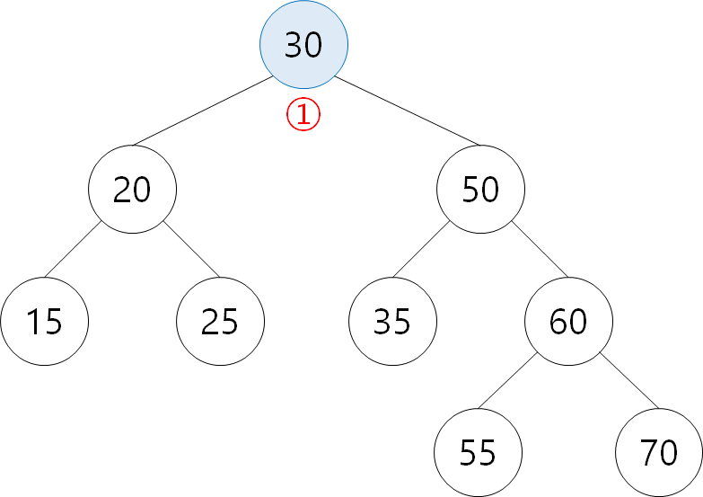 ① 30: Root 노드가 없으므로 30 삽입.