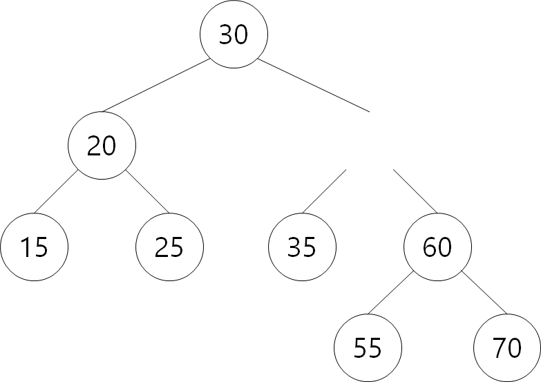60보다 크므로 오른쪽 탐색. 오른쪽에 70 삽입.