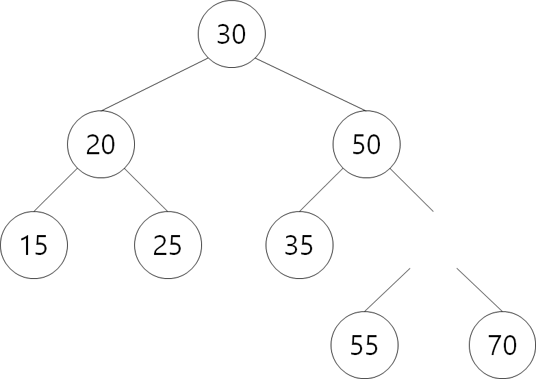 ④ 35: 30보다 크므로 오른쪽 탐색. 50보다 작으므로 왼쪽 탐색. 왼쪽에 35 삽입.