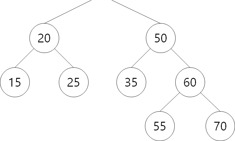60보다 작으므로 왼쪽 탐색. 왼쪽에 55 삽입.